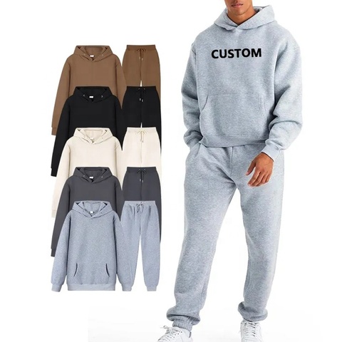 ファッションカスタムデザインブランクプレーンツーピーストラックスーツセット綿100% 厚手ユニセックスカスタムスウェットスーツ