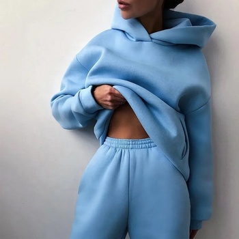 겨울 2 종 맞춤형 헐렁한 맞춤 특대 면 운동복 하이 퀄리티 무지 크롭 박시 후드 남녀공용 운동복 세트
