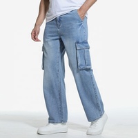 กางเกงยีนส์ขาตรงของผู้ชายทรงหลวมผ้า35% ผ้าฝ้ายสไตล์วินเทจ6กระเป๋าใส่สบายเหมาะสำหรับฤดูหนาว