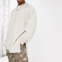 เสื้อยืดแขนยาว300 GSM แนวสตรีทแวร์เสื้อคอกลมชายผ่าข้างขนาดใหญ่สีพื้น